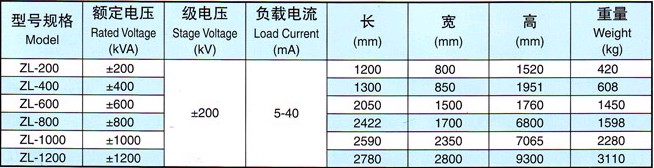 結構合理,額定電壓:200kV~1200kV,輸出電流大,電壓降落小,脈動系數低,采用可控硅自動跟蹤調壓措施,特殊設計可自動換極性,技術性能先進。